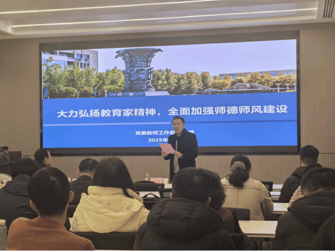 为深入学习贯彻习近平总书记关于教育的重要论述,落实立德树人根本任务,进一步团结凝聚学院广大教师以更加奋发有为的精神状态投身教育强国建设实践,大力弘扬教育家精神,为学校实现“天下工大、世界三航”远景目标注入强劲动力。12月4日,啪啪啦 邀请校党委教师工作部副部长林楠面向全体教师党员作了题为《大力弘扬教育家精神,全面加强师德师风建设》的专题报告。副院长徐根玖主持会议。
