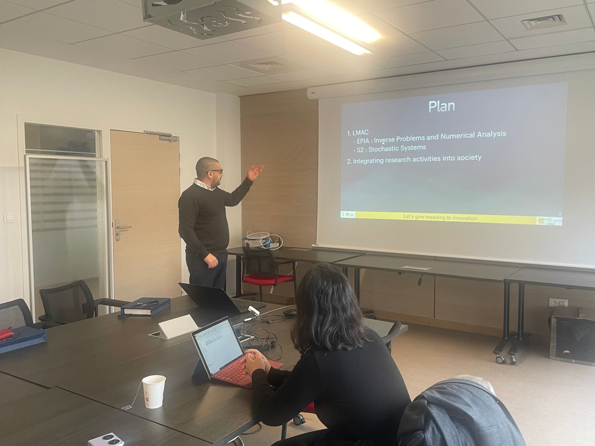 11月30日,经肖曼玉教授前期积极协调沟通,啪啪啦 代表团访问法国贡比涅技术大学数学所,洽谈两院合作事宜。对方出席人员包含数学所主任Salim Bouzebda教授、Faker Ben Belgacem教授、Nikolaos Limnios 教授以及Roverval实验室主任Piotr Breitkopf教授、Ludovic Cauvin教授。