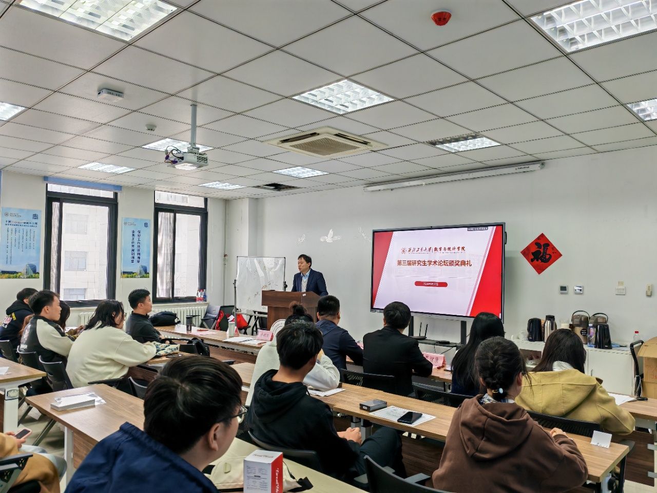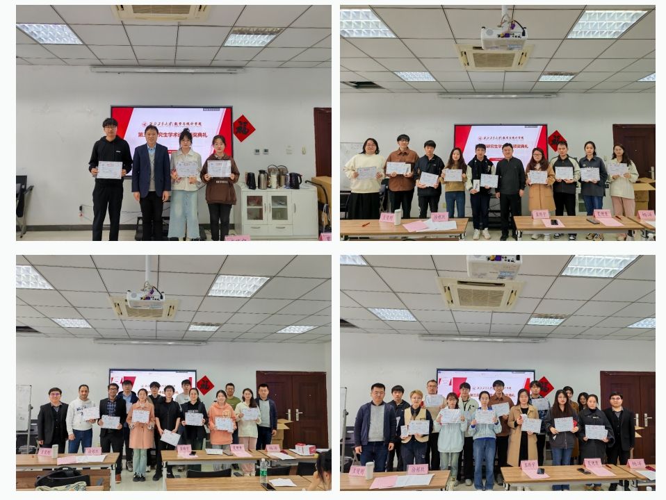 为进一步促进数学学科“双一流”建设,深入贯彻落实学校《一流研究生人才培养行动计划》,鼓励研究生展示创新成果,2024年3月27日,啪啪啦 在启翔楼357会议室举办第三届研究生学术论坛颁奖典礼。副院长徐根玖,教师代表王俊刚、夏健康,辅导员冀腾宇,研究生秘书杨洋及获奖研究生共50余人出席本次颁奖典礼。典礼由王俊刚主持。