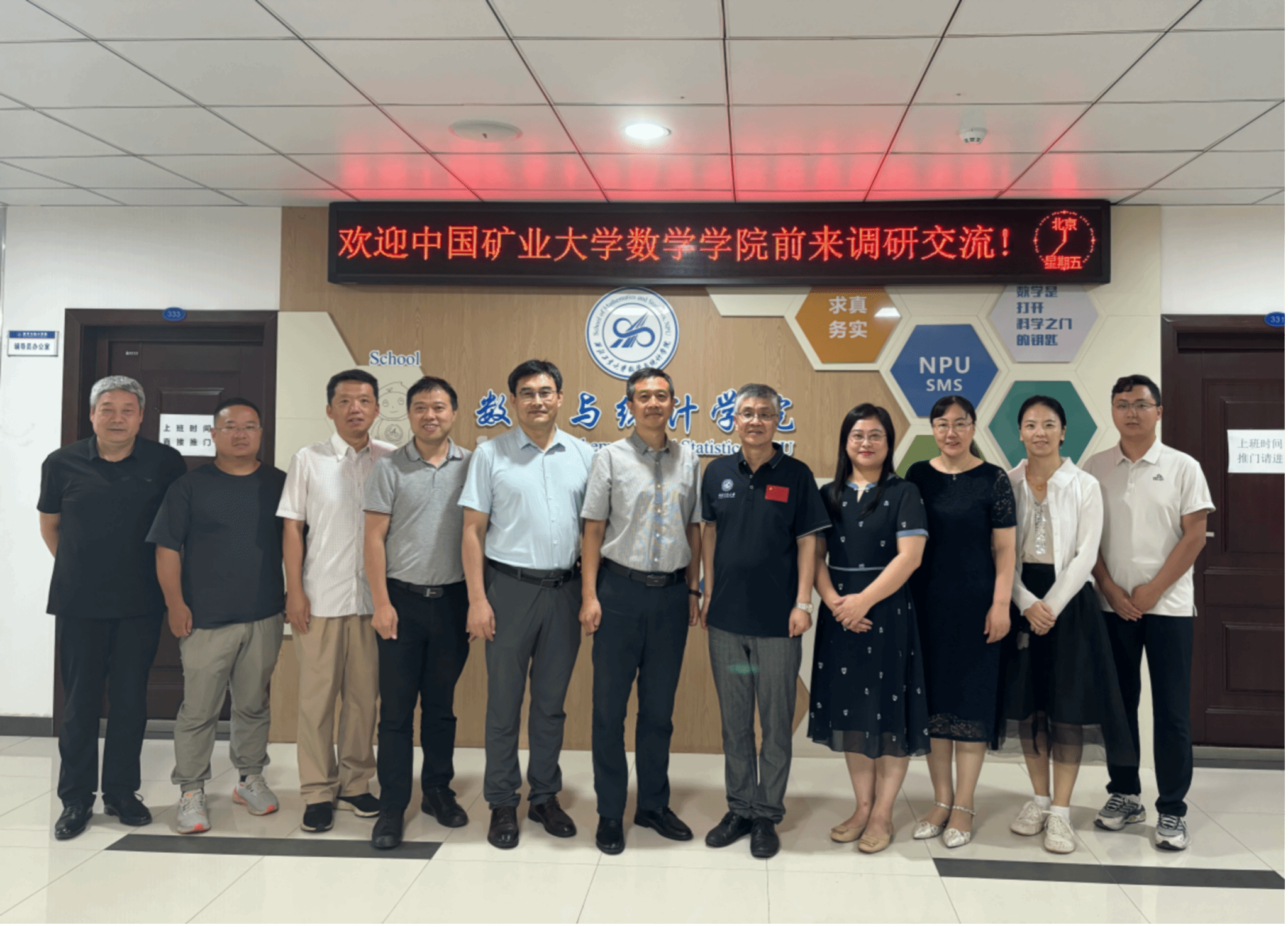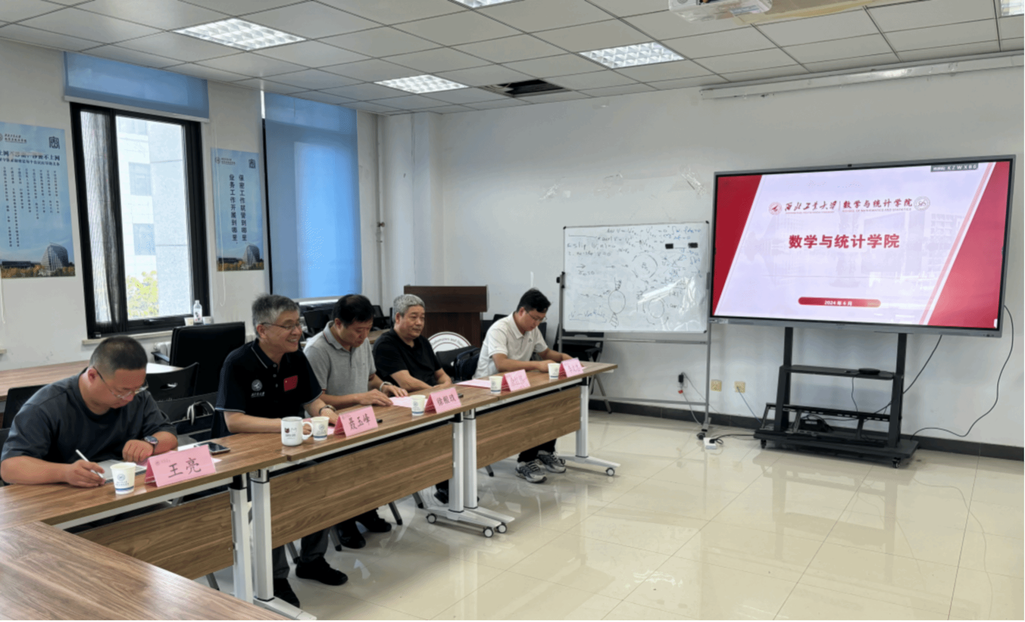 7月12日,中国矿业大学数学学院院长范胜军、副书记程婷婷,教学副院长张慧星,学科建设委员会主任邵虎,统计学专业负责人姚香娟,一行五人来啪啪啦 调研交流,学院院长聂玉峰,副院长徐根玖、概率统计系主任王亮,实验教学中心主任佘红伟,教师李文忠及教学秘书李思遥,参加了调研座谈会。会议由聂玉峰院长主持。
