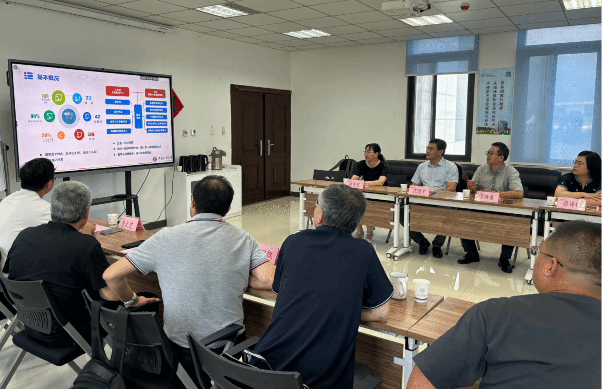 聂玉峰院长从学院历史沿革、师资概况、数学拔尖人才和“总师型”人才培养、科学研究、国际合作等方面做了重点介绍,并就学院近几年取得的成果分享了工作开展思路和经验方法。范胜军介绍了中国矿业大学数学学院发展历程、专业建设、师资状况、人才培养等方面的情况。双方围绕数学学科建设、拔尖人才培养、科学研究等方面进行了深入细致的交流。
