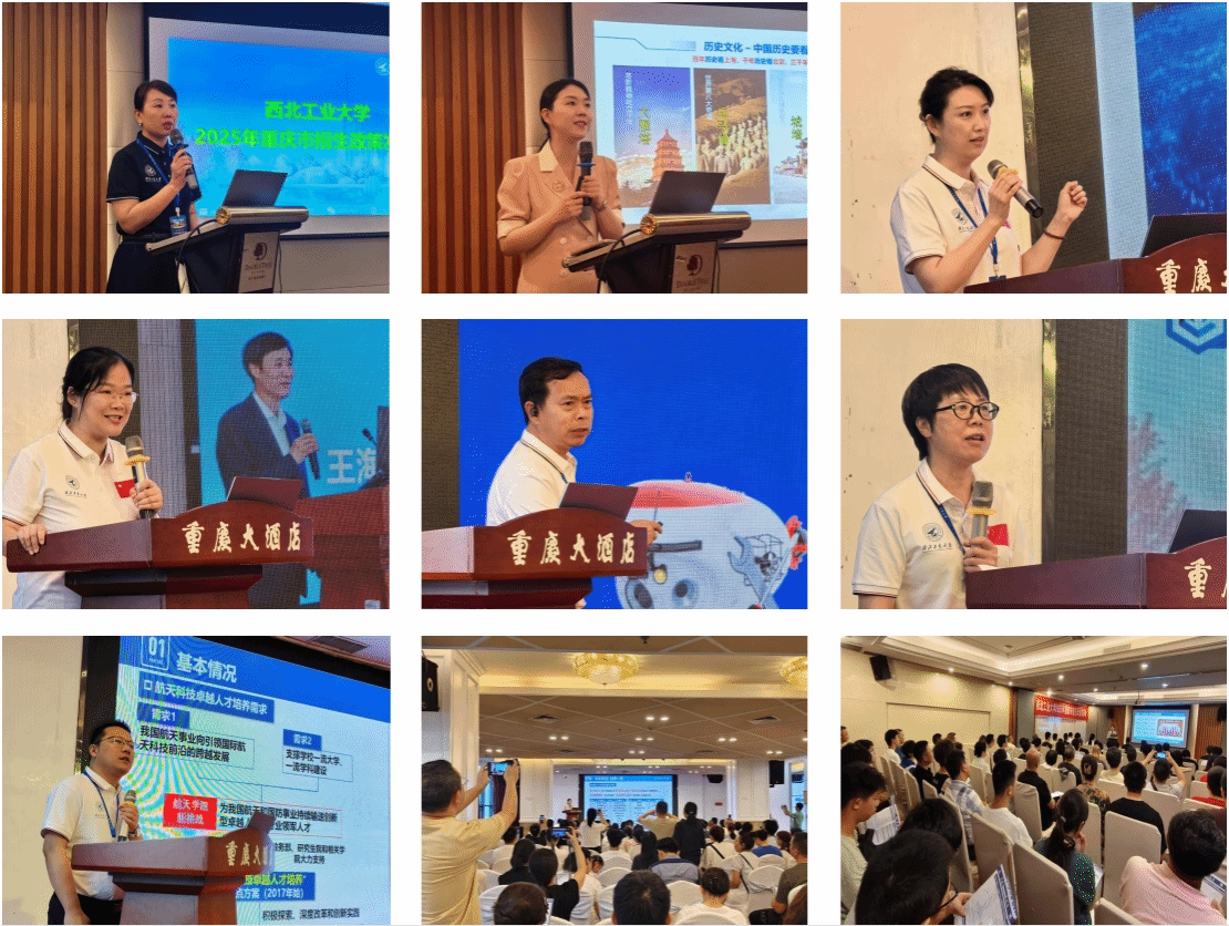 6月21日-22日,继续连续组织两场西工大招生政策宣讲会,发布会聚焦学校2025年在渝招生政策及拔尖人才培养体系。招办副主任马婷婷,航空学院李霓,航海学院雷开卓,啪啪啦 党委书记王莉、副院长都琳、院长助理刘晓刚和林伟老师依次介绍特色班培养模式。李彦吉和常昕烨在现场为考生及家长提供了专业、热情的咨询服务。