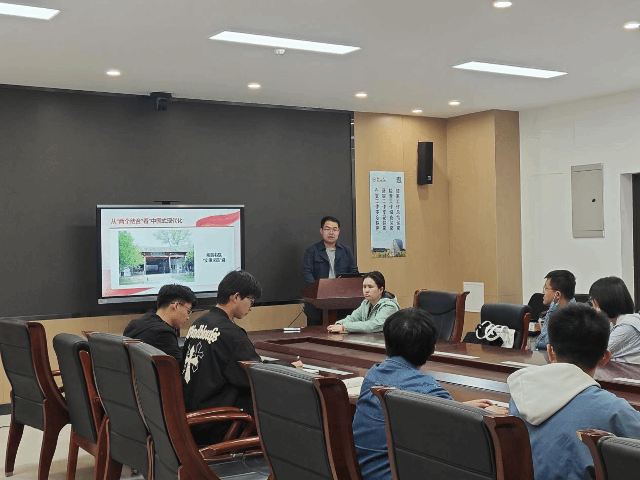 工大青年宣讲团成员张昊以《从“两个结合”看“中国式现代化”》为题,介绍了在中国进行革命和建设社会主义必然要把马克思主义基本原理同中国具体实际相结合、同中华优秀传统文化相结合的必要性,讲述了“两个结合”与“中国式现代化”的交汇点在于“中国”,并对经过“两个结合”才能充分展现马克思主义的真理力量、充分发挥马克思主义实践伟力的理论做了阐释。