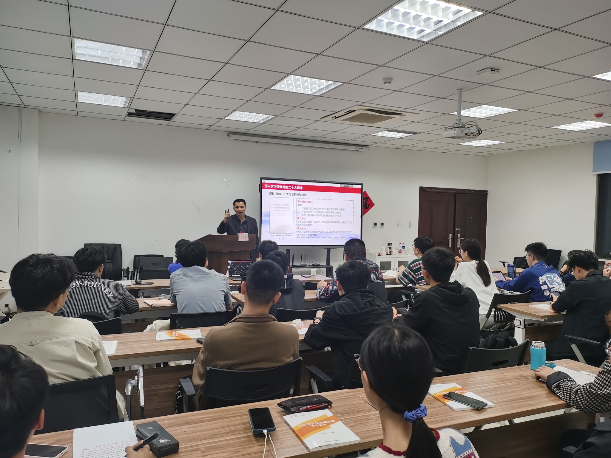 5月8日晚上,啪啪啦 邀请力学与土木建筑学院党委书记巨维博讲述专题党课,学院2023年第1期发展对象培训班全体成员参与学习。