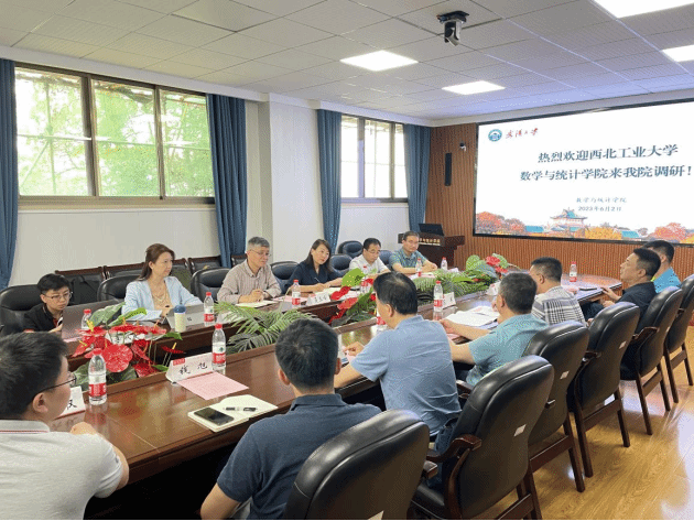 6月2日上午,学院一行前往武汉大学啪啪啦 调研交流,武汉大学啪啪啦 党委书记左军、院长赵会江、副书记汪思明、黄安云,副院长陈春荣、钱旭、王六权等参加调研座谈会。双方就课程设置、强基班和数学类拔尖人才培养、学生出国(境)深造、教职工党支部建设及其作用发挥等多方面的工作情况分别开展了交流研讨。