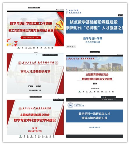会上,学院领导班子成员围绕学习贯彻习近平新时代中国特色社会主义思想主题教育,结合教工党支部推动党建与业务融合发展、数学学科高层次人才引育、数学学科一流研究生人才选拔与培养机制、数学有组织科研与交叉融合、数学专业学业学风建设、数学本科拔尖人才培养等课题,介绍了各自的调研情况和阶段性成果,提出解决问题、促进发展的对策举措。