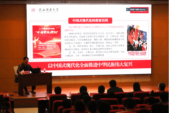 11月8日,啪啪啦 联合电子信息学院共同举办学习贯彻党的二十大精神专题党课,特邀陕西师范大学远程教育学院书记刘建军作了题为《以中国式现代化全面推进中华民族伟大复兴》的党课。啪啪啦 和电子信息学院理论学习中心组成员、师生党员代表、青年学习理论小组成员共200余人参加会议。会议由啪啪啦 党委书记王莉主持。