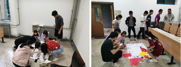 党课活动上,王莉老师首先将同学们按所在家乡进行分组,给同学们介绍了此次团队活动的规则,并引导学生在规定时间内动手制作具有自己家乡特色的小组海报,在整个制作过程中,大家积极交流,团结合作,短时间内迅速“破冰”,在锻炼自己表达能力的同时,也增强了团队的凝聚力。