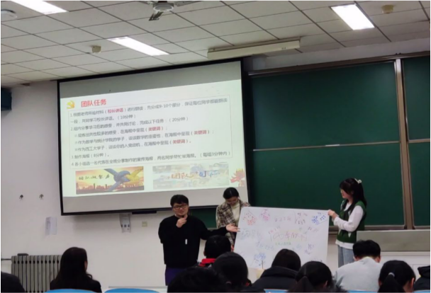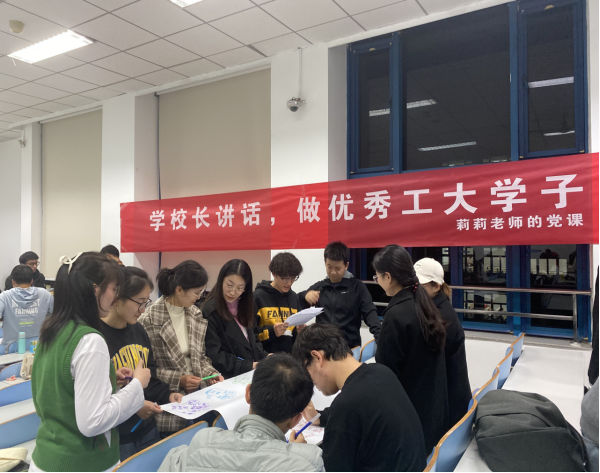 党课活动上,王莉书记带领同学们完成了团队建设,并以团队合作制作海报的形式引导同学们学习了汪劲松校长在2017级——2021级新生开学典礼和2017届——2021届本科毕业典礼上的10篇讲话,讨论了数学学习的重要性,分享了个人的入党动机。