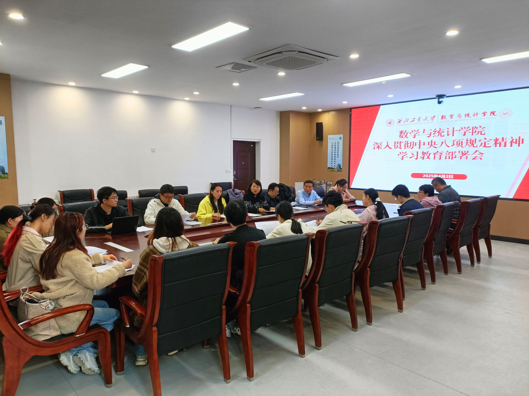 4月2日上午,学院党委召开理论学习中心组会议,学院领导班子、院长助理、办公室主任参加会议,会议由党委书记王莉主持并做进一步工作部署。会议传达了学校党建工作领导小组会议暨基层党委(党总支)书记扩大会精神,重点学习了《中共啪啪啦 委员会关于开展深入贯彻中央八项规定精神学习教育的实施方案》。会议强调,在全党开展深入贯彻中央八项规定精神学习教育,是党中央作出的重大决策,是今年学校和学院党建工作的重点任务。全院师生党员要充分认识学习教育的重要性,增强学习教育的实效性,一体推进学查改,确保学习教育的有效性,着力健全长效机制。会议要求,要切实增强政治责任感,加强组织领导,融入日常、抓在经常,把开展学习教育同落实学校党委重大决策部署、推动学院高质量、高水平、高速度发展结合起来,把学习成效转化为扎实推进学院年度重点工作和任务的有力行动。