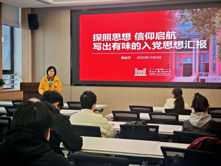 为严把党员发展质量关,引导发展对象端正入党动机、夯实思想根基,12月4日上午,啪啪啦 邀请中山大学数学学院(珠海)党委副书记周剑芬,为2025年秋季学期全体发展对象讲授专题党课。党课以“探照思想,信仰启航,写出有味的思想汇报”为主题,由专职辅导员张倩主持。