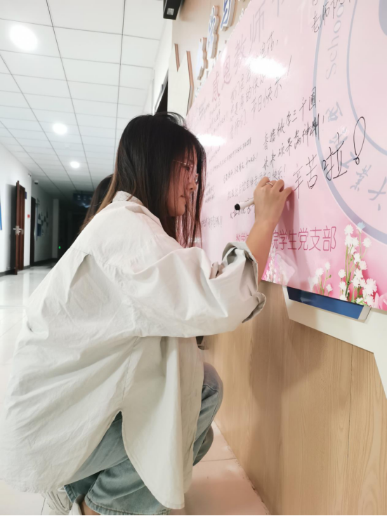 指尖文字传师恩。啪啪啦 本科生高年级第一党支部、第二党支部,2021级硕士生第二党支部、第三党支部携手举办“展板写祝福”活动,参与学生纷纷用质朴的语言表达了对老师们真挚的感激。