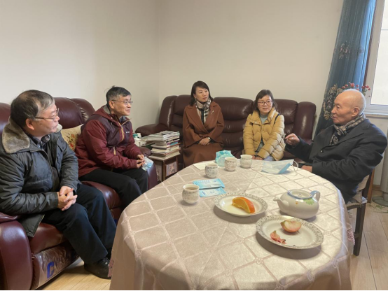 在张肇炽老师家中,院长聂玉峰介绍了学院成立以来所取得的新成绩,并就学院未来的发展规划向张老师作了说明。王莉书记仔细地询问张老师退休后的身体、生活状况,和大家一起畅聊学院的发展历程。