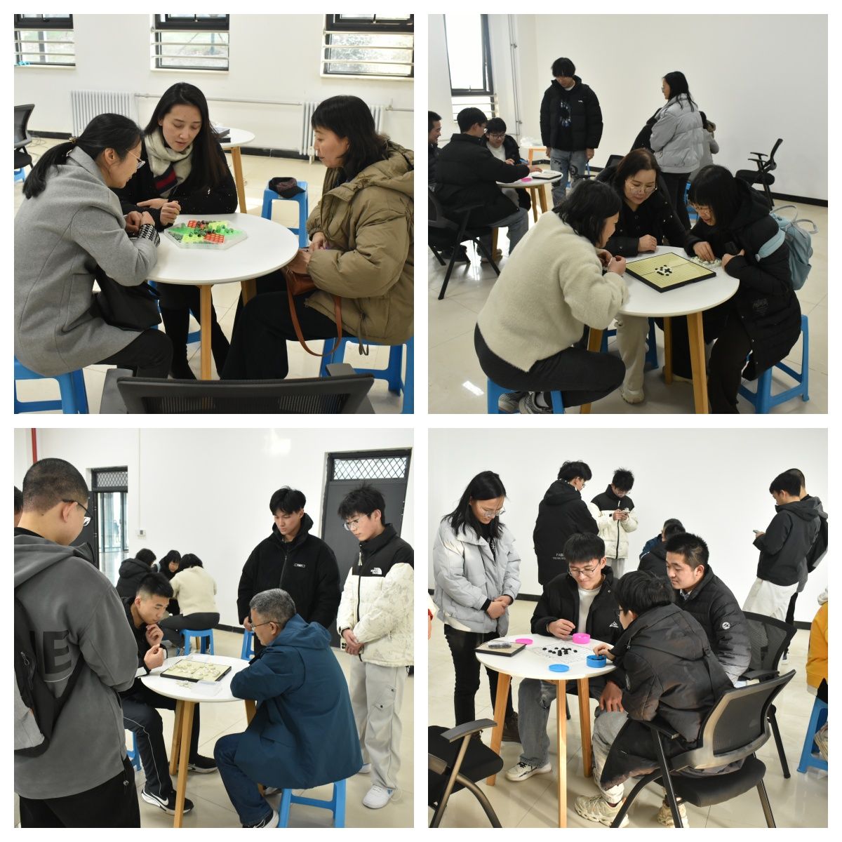 下午三点,趣味运动会正式开始。在率先举行的拔河比赛中,党委书记王莉一声哨响,参赛师生们紧握绳索,身体后仰,双脚蹬地,使出浑身解数。两边观众呐喊助威,“一二一二”的加油声响彻校园。在夹乒乓球传递活动中,“快准狠”的动作与熟悉的默契度又成了观看的焦点,老师们技高一筹,丰富的经验获得了一局又一局胜利。投壶、丢沙包等活动周围也有不少师生热情参与,室内的五子棋、跳棋、象棋、围棋又是师生之间脑力和计算的比拼。平常在科研、工作、学习、生活上的压力也在一系列活动中得到充分释放,身心欢愉。