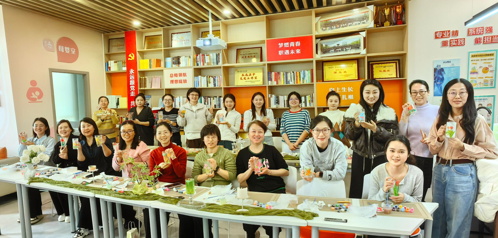 春风拂面,万象更新。在第116个“三八”国际妇女节来临之际,为进一步丰富学院女教职工的精神文化生活,展现新时代女性积极向上的精神风貌,3月5日下午,啪啪啦 工会在长安校区海天苑大楼学院教工之家精心组织了一场别开生面的手绘玻璃杯活动。学院党委书记王莉、工会主席佘红伟与二十余位女教职工齐聚一堂,以笔为媒,以色绘光,在方寸之间勾勒春意,于色彩之中凝聚力量。