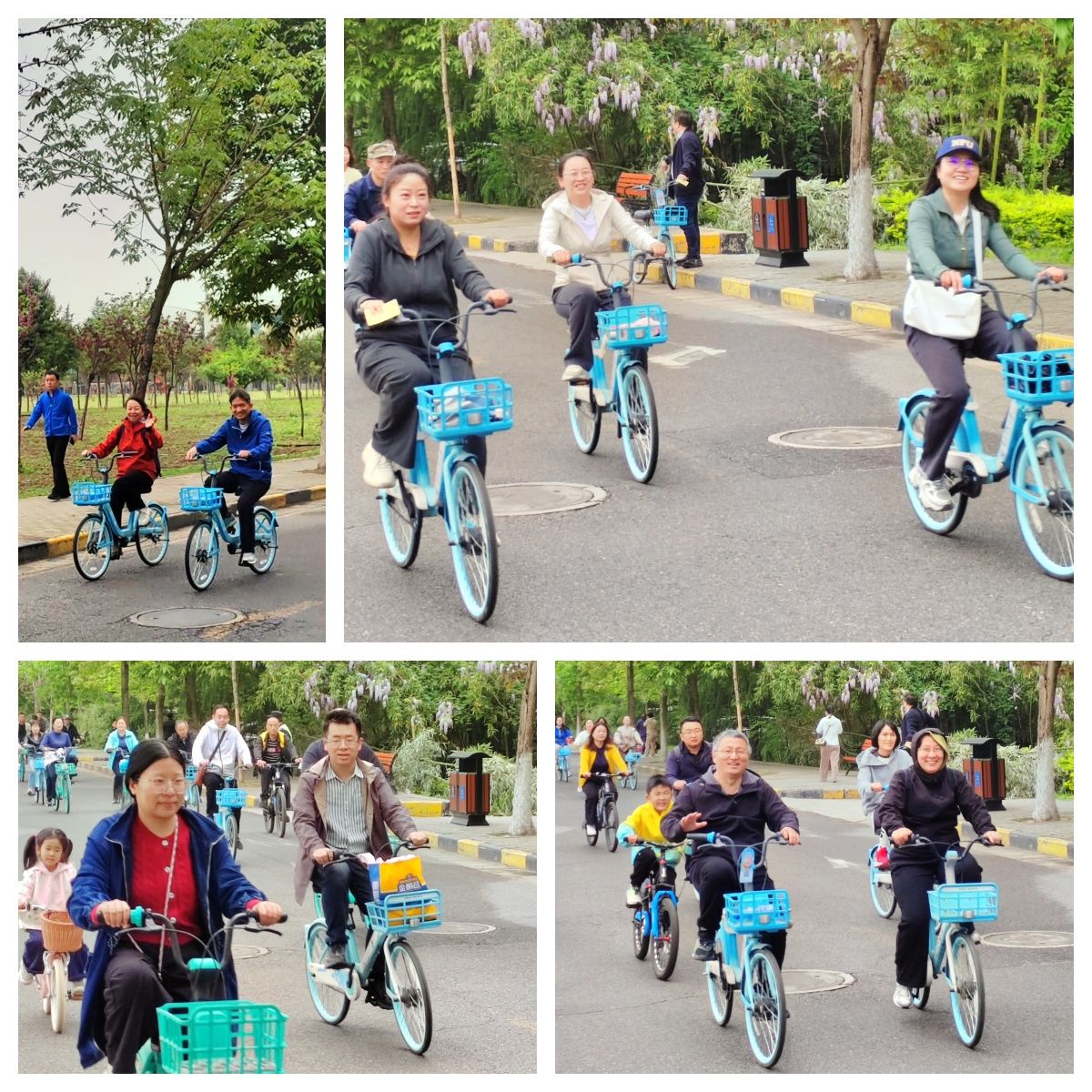 上午九点,长安校区家属区出发点人头攒动,热闹非凡。啪啪啦 的老师们脸上洋溢着期待的笑容,身着轻便运动装,在学院工作人员处有序领取专属贴纸,跃跃欲试。本次骑行路线设计巧妙,老师们需沿指定路线骑行2圈后返回终点。在骑行过程中,学院的老师们展现了良好的精神风貌和团队协作精神。大家三五成群,结伴而行,时而谈笑风生,时而驻足欣赏沿途美景,平日里严谨治学的老师们此刻尽情享受着骑行带来的自由与快乐,感受着校园春日的勃勃生机。