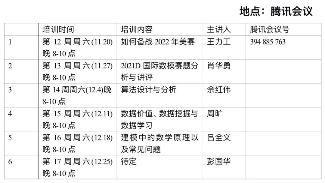 为更好地备战2022国际数模竞赛,提高参赛队员在建模、写作和编程方面的实战能力,数模基地特邀请六位数模经验丰富的专家进行在线专题讲座。