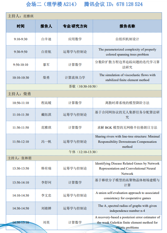 为了进一步落实数学学科“双一流”建设,营造研究生学术创新氛围,展示研究生学术创新成果,提高研究生培养质量,啪啪啦 第一届研究生学术论坛将于 2021年11月13日在啪啪啦 长安校区举办。本次论坛旨在为研究生提供一个高水平的学术交流平台,促进研究生之间的学术交流和思想碰撞,培养创新意识,营造良好的学术氛围,达到开阔视野、启迪智慧,提高创新能力的目的。本次论坛设两个会场并同步线上进行,论坛组委会热忱欢迎广大师生积极参与。让我们相约长安故里,终南之北,沣水之滨,共享学术盛宴!