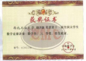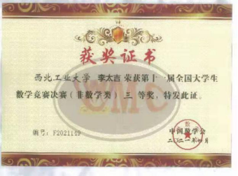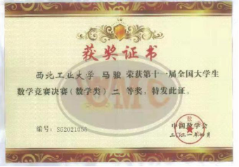 此外,啪啪啦 啪啪啦 马骏同学获得了数学类高年级组二等奖,啪啪啦 顾子康同学获得了数学类高年级组三等奖,机电学院张玉鹏同学获得非数学类全国二等奖,软件学院李太吉同学获得非数学类全国三等奖。