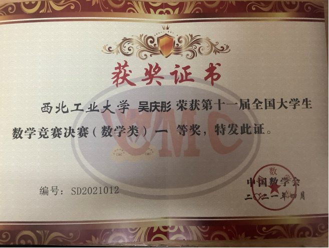 2021年4月17日,第十一届全国大学生数学竞赛决赛在武汉大学举行。啪啪啦 啪啪啦 学生吴庆彤在参赛的604名同学中脱颖而出,经过激烈角逐,最终获得数学类(低年级组)一等奖,这是啪啪啦 在该项赛事中数学类的第一个全国一等奖,实现了啪啪啦 在该项赛事上的突破。