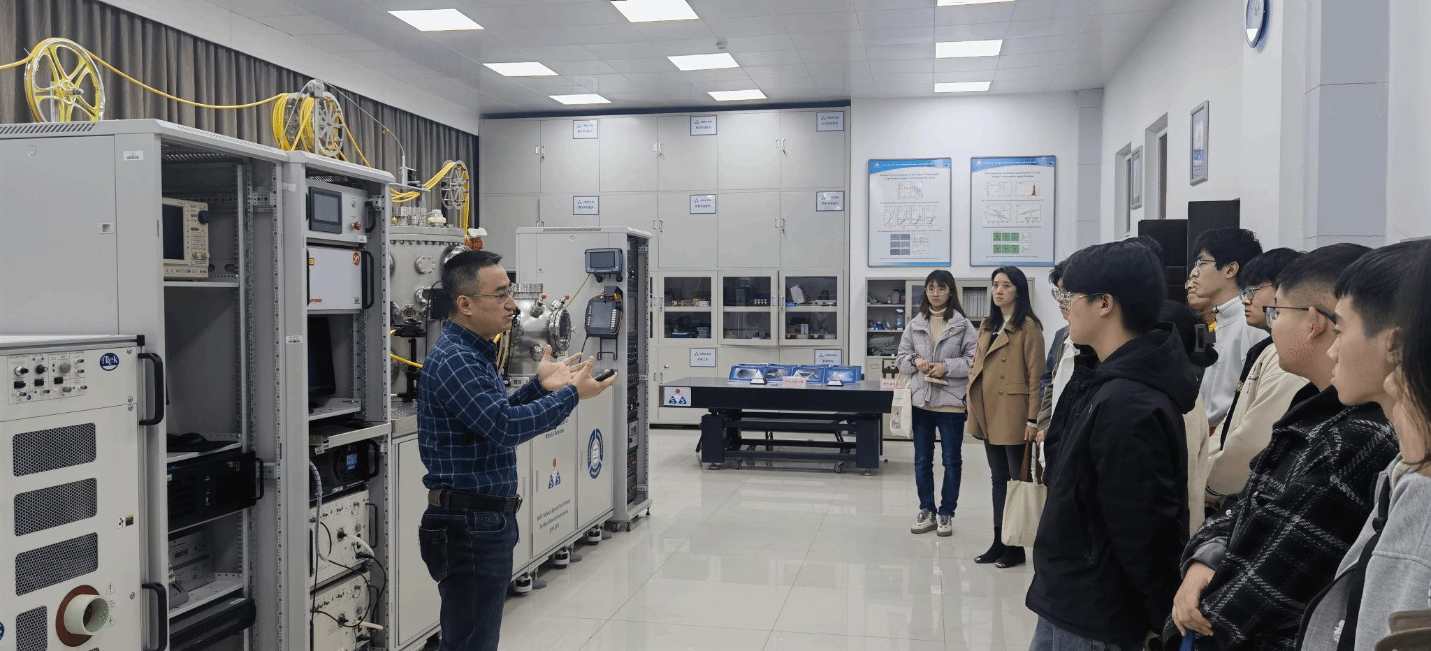 为丰富学生的科技知识,帮助学生了解学科特点、专业特色与研究方向,做好学业规划与未来方向选择,提升人才培养质量,啪啪啦 组织开展“数”研交融,“统”探新途——走近重点实验室系列活动。3月15日上午,学院党委副书记张莹、本科2021级班主任夏常春带领15名学生走近省部级重点实验室——空间材料科学与技术实验室。
