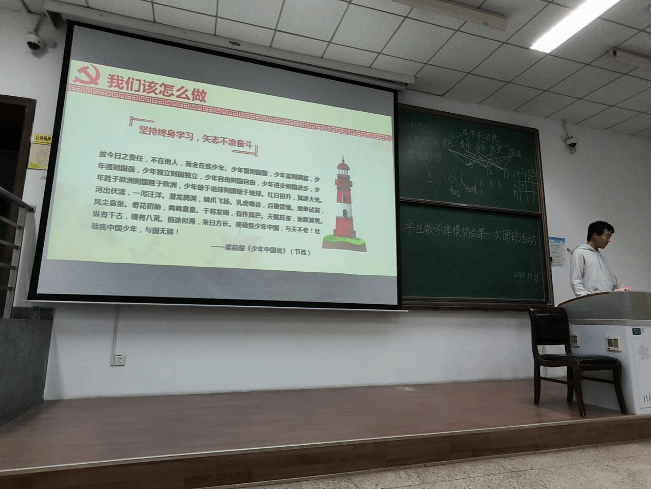 在这一背景之下,学生数学建模协会于2023年10月8日开展团日活动,号召协会成员学习弘扬爱国精神,以青春之我,奏响青春之赞歌。