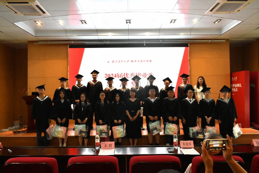 上午10:30,在庄严雄壮的国歌声中,典礼拉开帷幕。副院长郭千桥上台致辞,总结2024届学生学习、工作、生活的同时,也希望大家继续牢记“公诚勇毅”校训,发扬“三实一新”校风,将工大人的特点带到祖国的四面八方。随后,党委副书记张莹宣读了《啪啪啦 关于表彰2024届本科生“优秀毕业生”的决定》,并与党委书记王莉共同为全体优秀毕业生颁发礼品合影留念。毕业生代表陈子扬,刘思哲先后发言,他们不仅分享了自己在本科阶段的学习生活经历,而且也表达了自己的对老师和母校的感谢与美好祝愿。