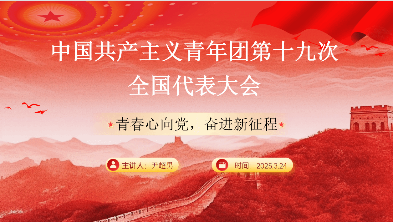 在新时代的征程中,共青团作为党的助手和后备军,肩负着引领青年、凝聚青年、服务青年的重要使命。 啪啪啦 研究生会、学生会积极贯彻落实团的十九大精神,于2025年3月24日组织开展了团的十九大精神学习分享会,旨在引导青年学生深入学习团的十九大精神,明确自身使命担当,为实现中华民族伟大复兴的中国梦贡献青春力量。