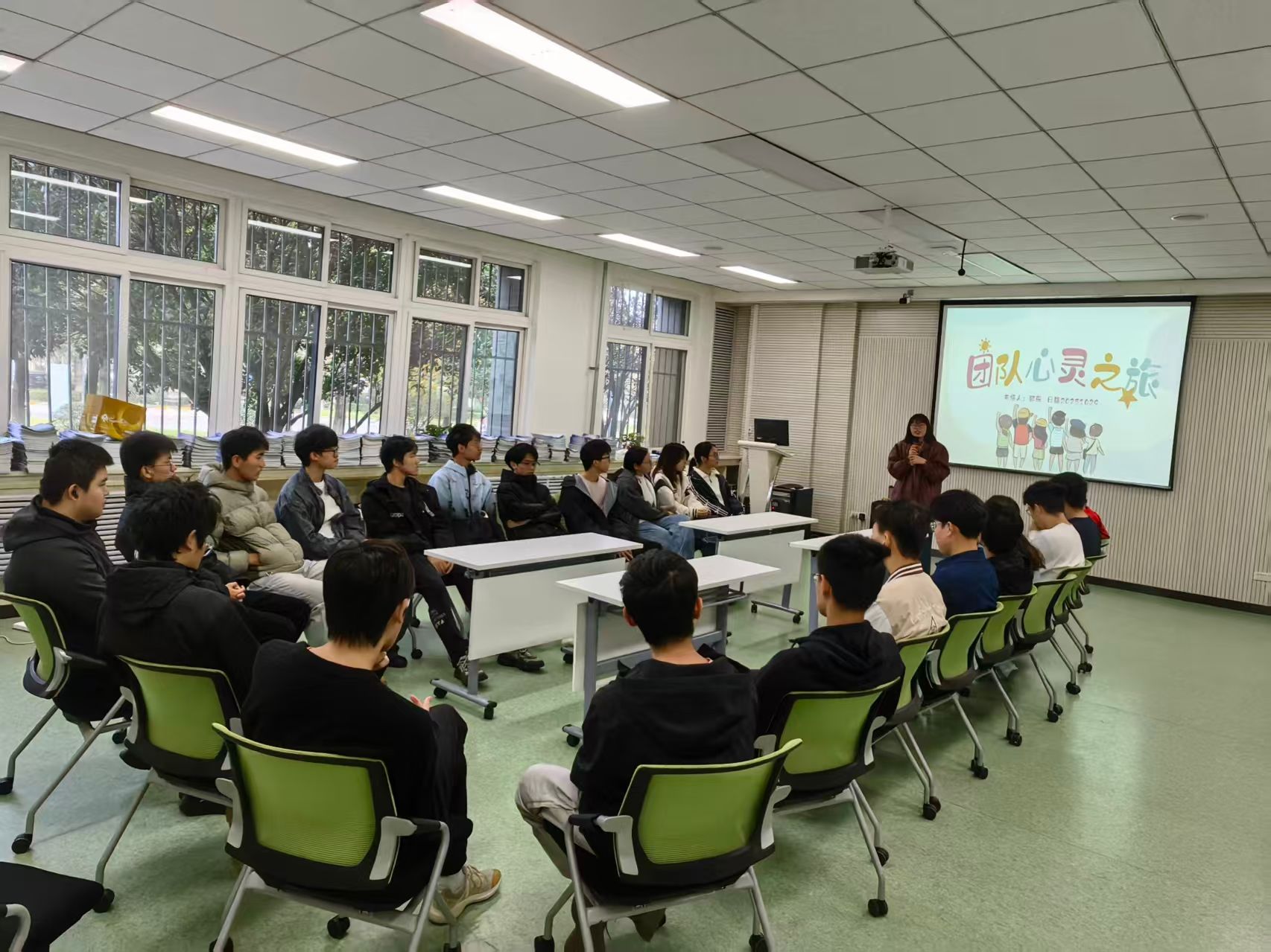 为进一步丰富学院“第二课堂”内容,强化专业确认后大二年级各新班级的凝聚力,舒缓学生学业压力,经与大学生心理健康教育中心共同策划,啪啪啦 小班专属活动“团队心灵奇旅——从个体表达到团队默契”团体工坊于10月30日在教学东楼D102顺利举办。学院2024级统计学专业11032401班22名同学均热情参与,在趣味互动中完成自我表达与团队协作的深度联结 。