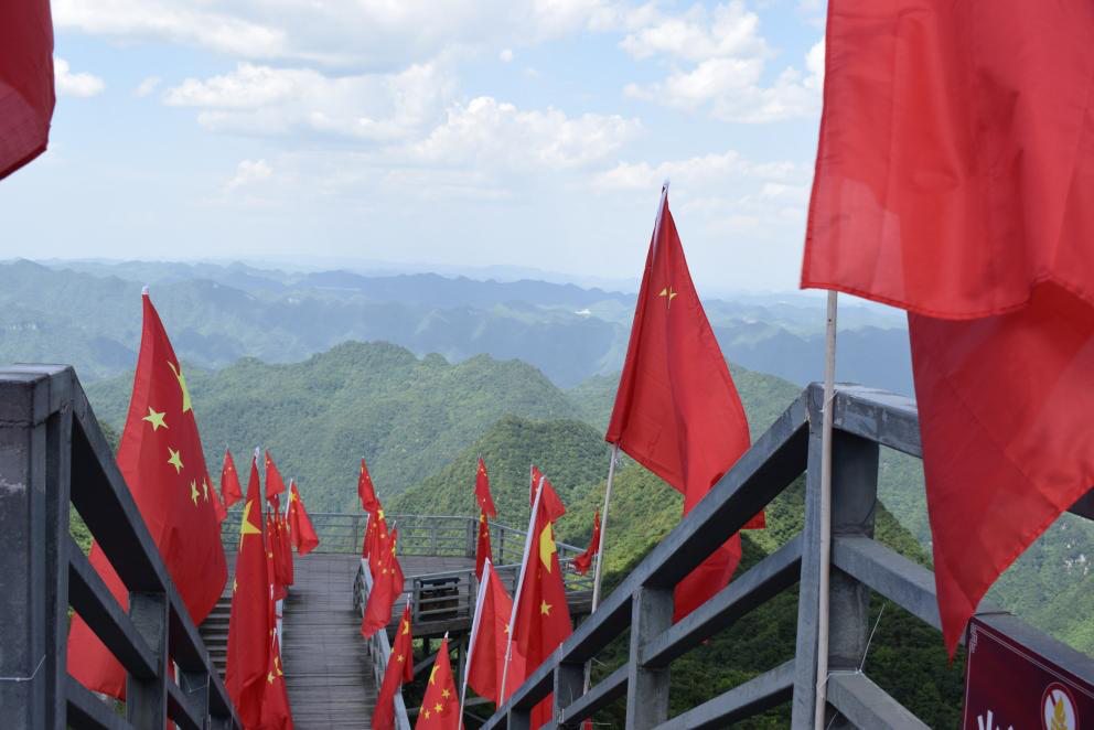 娄山关山势险峻,自古为兵家必争之地,中国红军两破娄山关也充分体现出了红军顽强拼搏、不怕万难,为民族大业勇于献身的高尚品质。那一面面迎着风飘扬的五星红旗仿佛在告诉我们,那是用红军战士的鲜血染红的,吾辈当自强。
