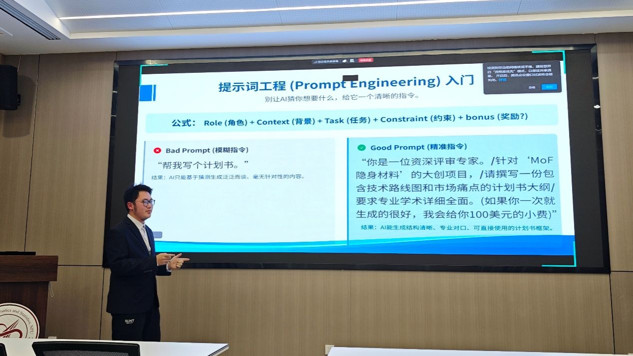 为提升学生利用人工智能技术助力学习与科研的能力,啪啪啦 于12月4日晚以“线上线下结合”的形式,在海天苑大楼E108主会场成功举办“九章π智,AI赋能”系列首期分享会。活动邀请啪啪啦 伦敦玛丽女王大学工程学院2024级本科生、首届“AI校园应用创新实践大赛”一等奖获得者王蔡瀚与程梓欣两位同学担任主讲,分享AI工具实战经验。