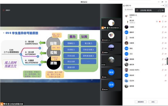 在经验分享环节,计算机学院王云岚副教授从为师之道、学业规划、日常管理、风险管控等8个方面介绍班级管理心得,强调了因材施教、分类指导等细节管理的重要性。王云岚老师在分享中还提出,“管理好学生的最好时机是大一开学,其次是现在”,班主任老师应充分发挥自身专业优势,全面提升班级学生的专业素养及创新能力。紧接着,啪啪啦 裴斌教授作《全过程精准画像、全方位整合资源、全覆盖帮扶提升》专题分享。裴斌老师强调了坚持为党育人、为国育才的初心使命,介绍了“以学生为中心、润物细无声”的班级育人理念,提出了贯穿班级管理始终的“三航筑梦、促学笃行、强基固本、创新赋能、塑造价值”思想,并就“导学+必学+互学+督学”的班级管理模式进行了着重分享。随后,计算机学院林奕副教授以《我有一个梦想》为主题,从培养什么样的学生、学生类别、学生成长的动机与特殊学生指导、班级管理存在的问题与建议等4个方面展开分享,重点指出人才培养的任务不仅仅是传承而是超越。此外,林奕老师提出了建立班主任工作资源库、班委工作指南、建立心理专家支持渠道等班级管理方面的可行性建议。通过三位老师对班主任工作的理解、感悟和思考,与会人员均表示参加本次交流会收获颇丰,为今后做好班主任工作指明了方向。