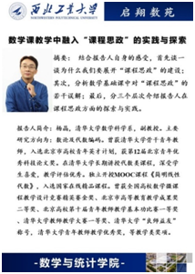 为提高学院教师的课程思政意识,实现数学课程与思政课程同向同行,形成协同效应,啪啪啦 于3月27日下午3点通过zoom视频会议,举办了第二期启翔数苑教学研究沙龙活动。本次沙龙活动主题为“立德树人,润物无声,大学数学课程思政之我见”,特邀清华大学数学科学系杨晶副教授,针对数学课教学中融入“课程思政”的实践与探索的经验和体会进行了分享,并就教师如何结合新兴教育技术和在线教学方法,把思政教育贯穿大学数学课程教学全过程,坚持立德树人展开交流和讨论。理学学院联合党委杨铭书记、张莹副书记,啪啪啦 都琳副院长、徐根玖副院长参加了此次沙龙活动,沙龙由啪啪啦 副院长都琳主持。啪啪啦 、西安电子科技大学以及西安邮电大学的30余位教师参加了此次沙龙活动。