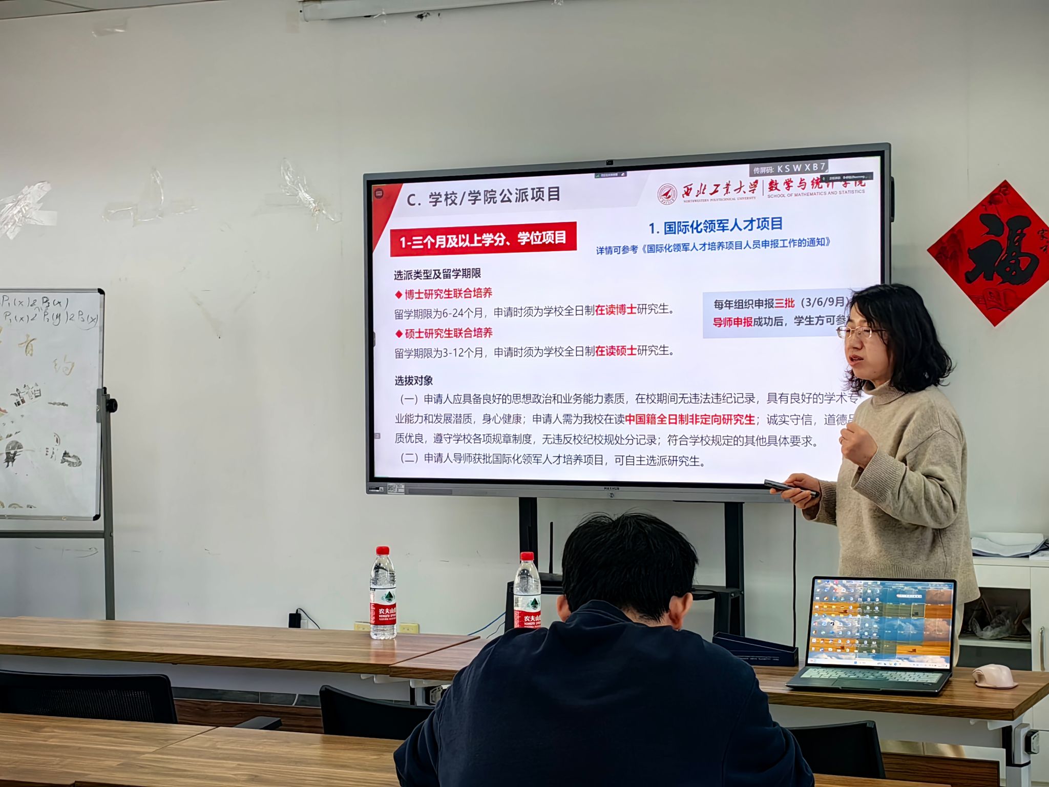为深入学习贯彻党的二十大精神,助力学院国际合作与交流开拓新局面,拓宽学生国际化视野,激发学生参与国际交流热情,2024年1月12日,学院组织开展学生赴国(境)外交流宣讲会。宣讲会采用线上线下相结合的方式开展,学院国际交流与合作办公室主任肖曼玉负责主持,外事秘书李卓榕主讲,本、硕、博各年级学生四十余人参加了会议。