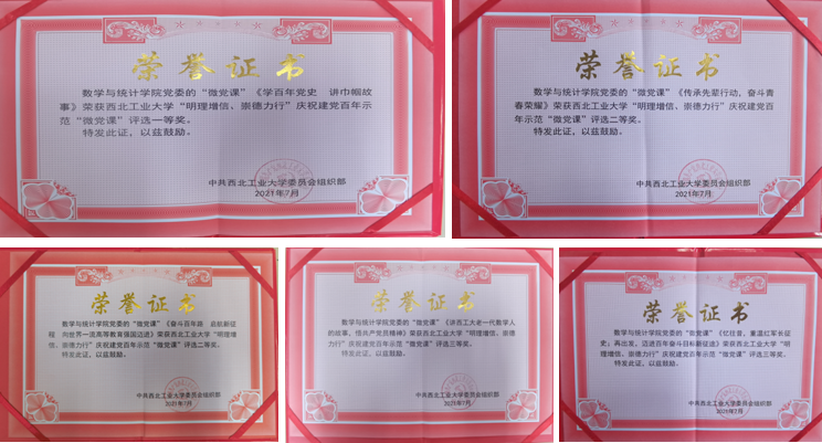 日前,在啪啪啦 “明理增信、崇德力行”庆祝建党百年示范“微党课”活动公布的评审结果中,啪啪啦 党委选送的五个作品均榜上有名,全部获奖。其中由学院党委副书记(主持工作)王莉同志讲述的微党课《学百年党史 讲巾帼故事》在101个获奖作品中拔得头筹,位列第一。其余作品《传承先辈行动,奋斗青春荣耀》《奋斗百年路 启航新征程 向世界一流高等教育强国迈进》《讲西工大老一代数学人故事,悟共产党员精神》《忆往昔,重温红军长征史;再出发,迈进百年奋斗目标新征途》分获两个二等奖、两个三等奖共计四项殊荣。