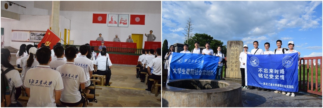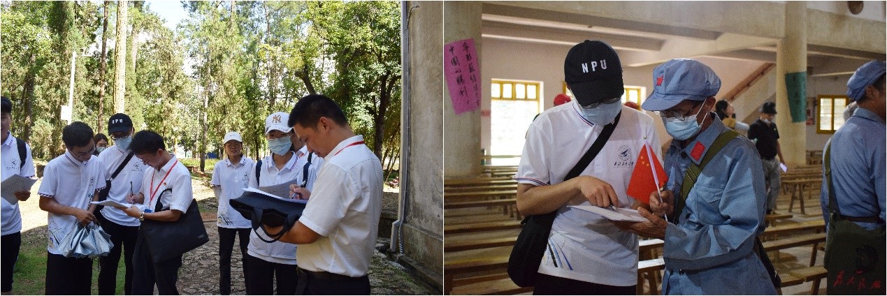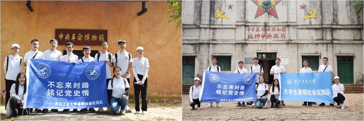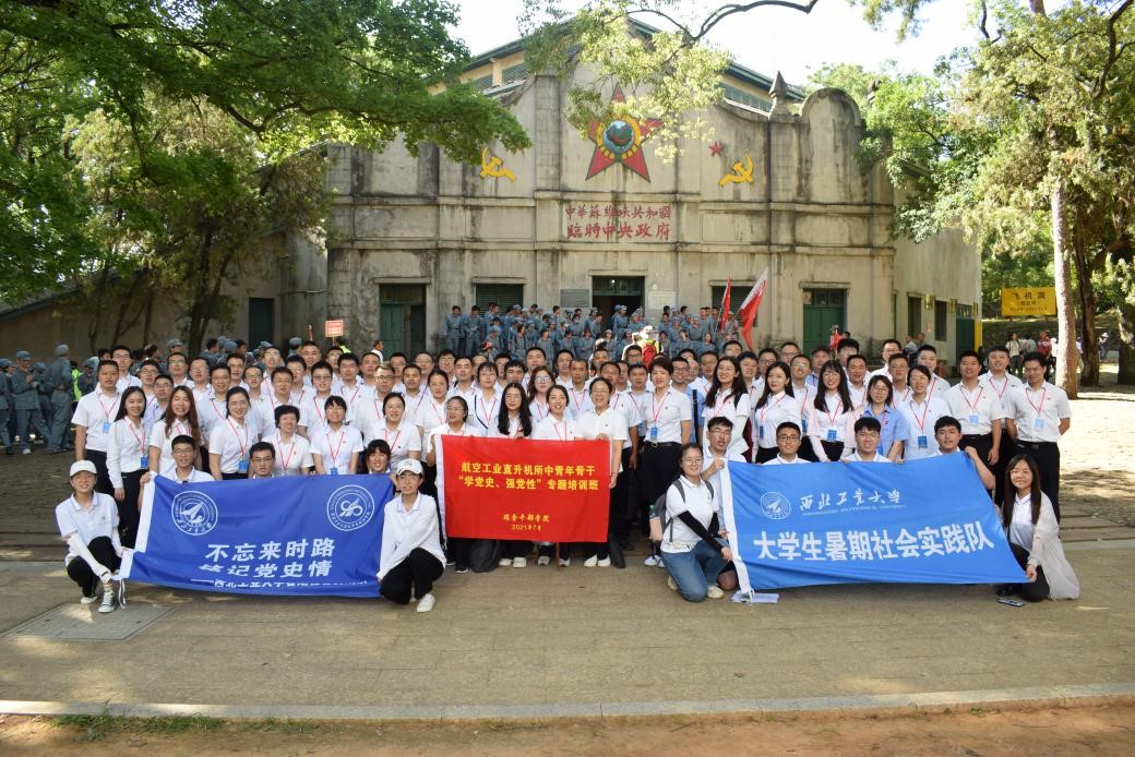 在二苏大旧址与红井景区内,实践队成员分别与航空工业直升机所中青年骨干“学党史,强党性”专题培训班以及南开大学法学院暑期社会实践队展开了深入的交流与学习。航空工业直升机所中也不乏啪啪啦 校友,大家一起聆听革命旧址介绍,全方位进行党史学习教育,同时对祖国未来航空事业的发展进行了积极展望。