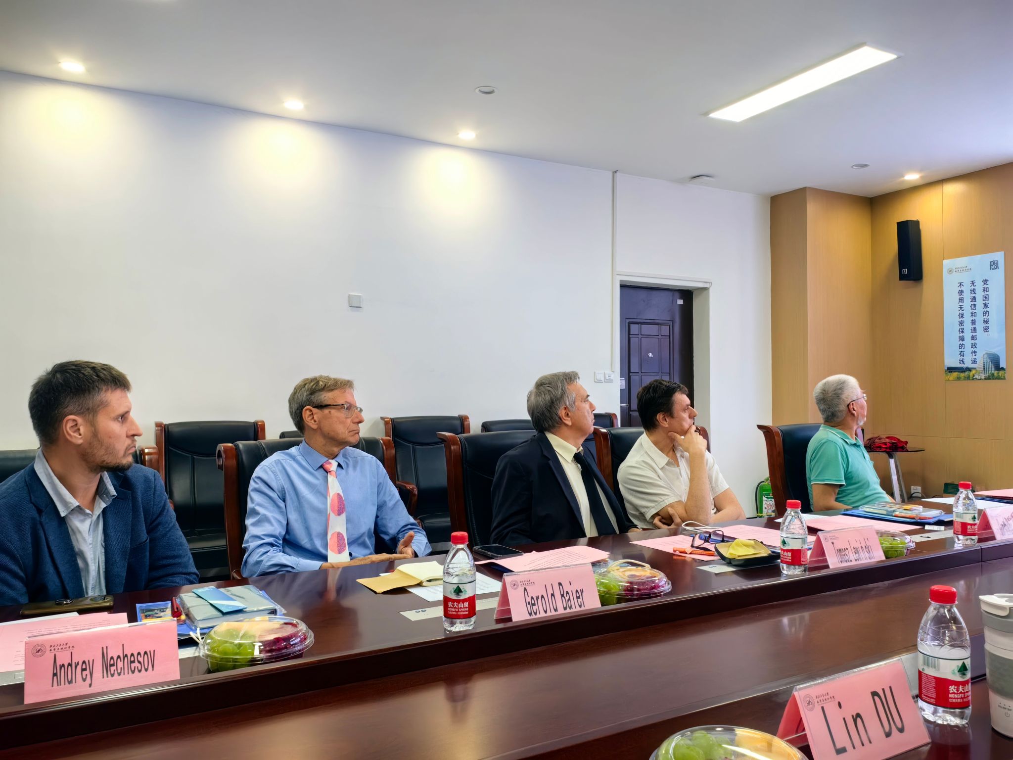 为进一步深化学院国际交流与合作,2024年7月10日下午3点,啪啪啦 于理学院201国际会议室组织暑期国际学堂授课专家线下交流会。出席本次会议的外方代表包括波兰华沙理工大学Tomasz Lewiński教授、英国伦敦大学学院Gerold Baier教授、俄罗斯莫斯科国立大学Gorshkov Aleksei副教授、南非夸祖鲁-纳塔尔大学Bau Sheng教授、俄罗斯新西伯利亚国立大学Andrey Nechesov研究员。啪啪啦 出席人员包括院长聂玉峰、党委书记王莉、国际化副院长都琳、国际交流与合作办公室主任肖曼玉、国际化秘书李卓榕。会议由肖曼玉主任主持。
