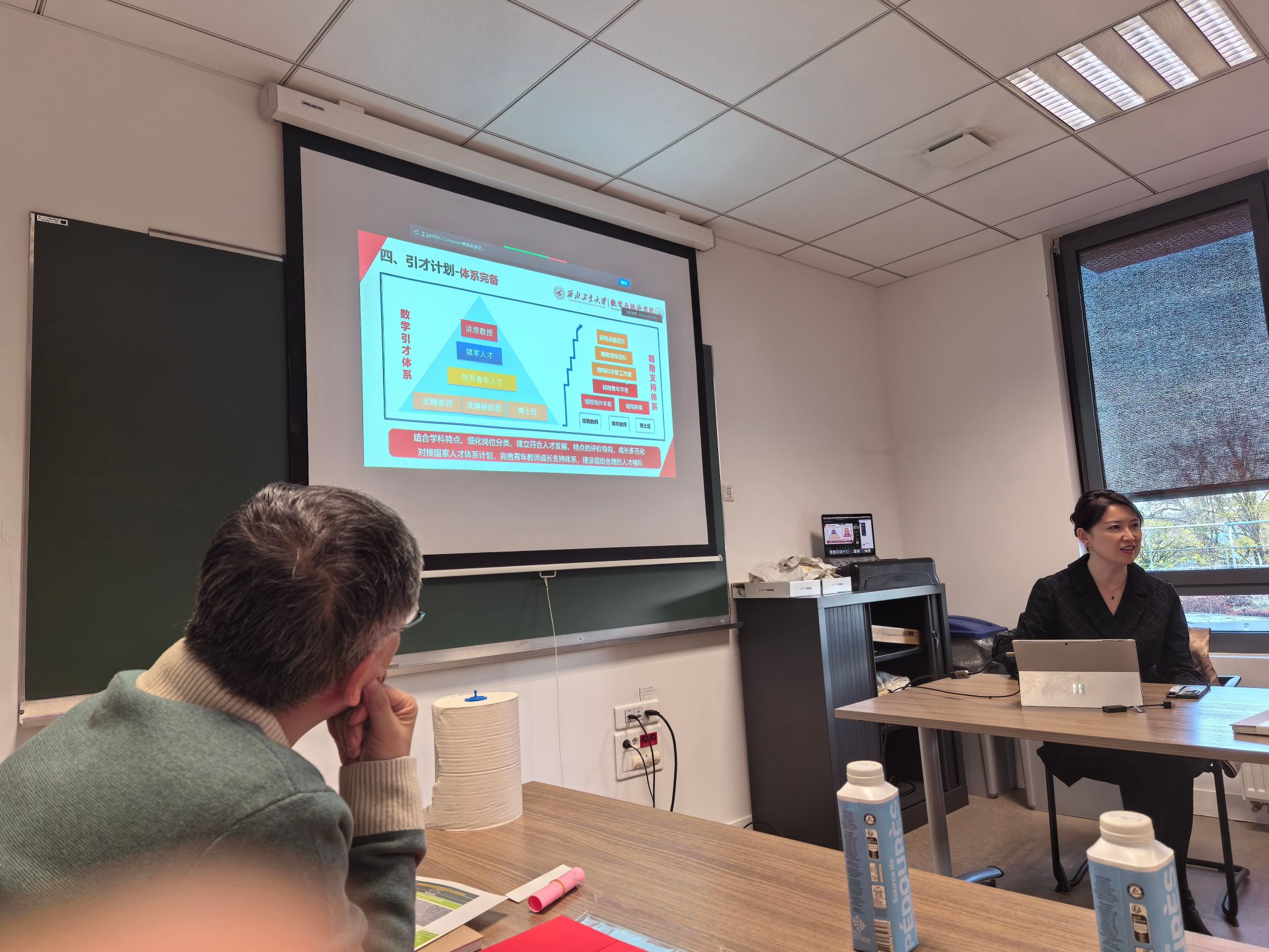 11月29日,啪啪啦 代表团组织法国贡比涅技术大学专场人才招聘会。招聘会共吸引了数学学科20余位青年学者关注咨询,近10余位学者现场参会交流。招聘会上,都琳教授向参会学者全面细致的介绍了学院科研、教学、国际交流与引才育才各项情况。与会学者积极回应,并就相关入职政策、后续发展提出问题。聂玉峰教授和肖曼玉教授就与会学者提出的关于专业、就业模式、待遇、后续发展等问题给予了细致专业的回答,并鼓励他们努力学好本领,将来能为国家多做贡献。会场气氛热烈非凡。