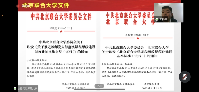 接着,哈尔滨工业大学尹逊波教授、北京科技大学储继迅副教授、北京联合大学玄祖兴教授、啪啪啦 郜璐璐、宋伟杰老师依次分别从微积分课程建设与改革、教学竞赛经验分享、课程教学中课程思政的融入、课程创新、课程思政的实践等方面作了精彩的分享,并与参会老师进行的充分的交流和讨论。