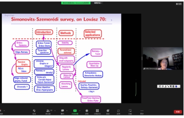受图论与组合数学团队李若楠老师邀请,2022年6月28日至7月7日,匈牙利科学院Miklós Simonovits院士为啪啪啦 师生讲授了暑期国际课程《极值图论》。啪啪啦 30余名本科生和研究生学习了此课程。同时,课程吸引了来自中国科学技术大学、山东大学、上海交通大学等国内其他院校的300多名师生线上参与。