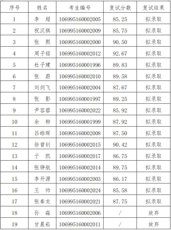 根据《啪啪啦 2025年博士研究生复试工作方案》,经复试资格审核及现场复试等环节,现将啪啪啦 2025年博士研究生考核结果公示如下: