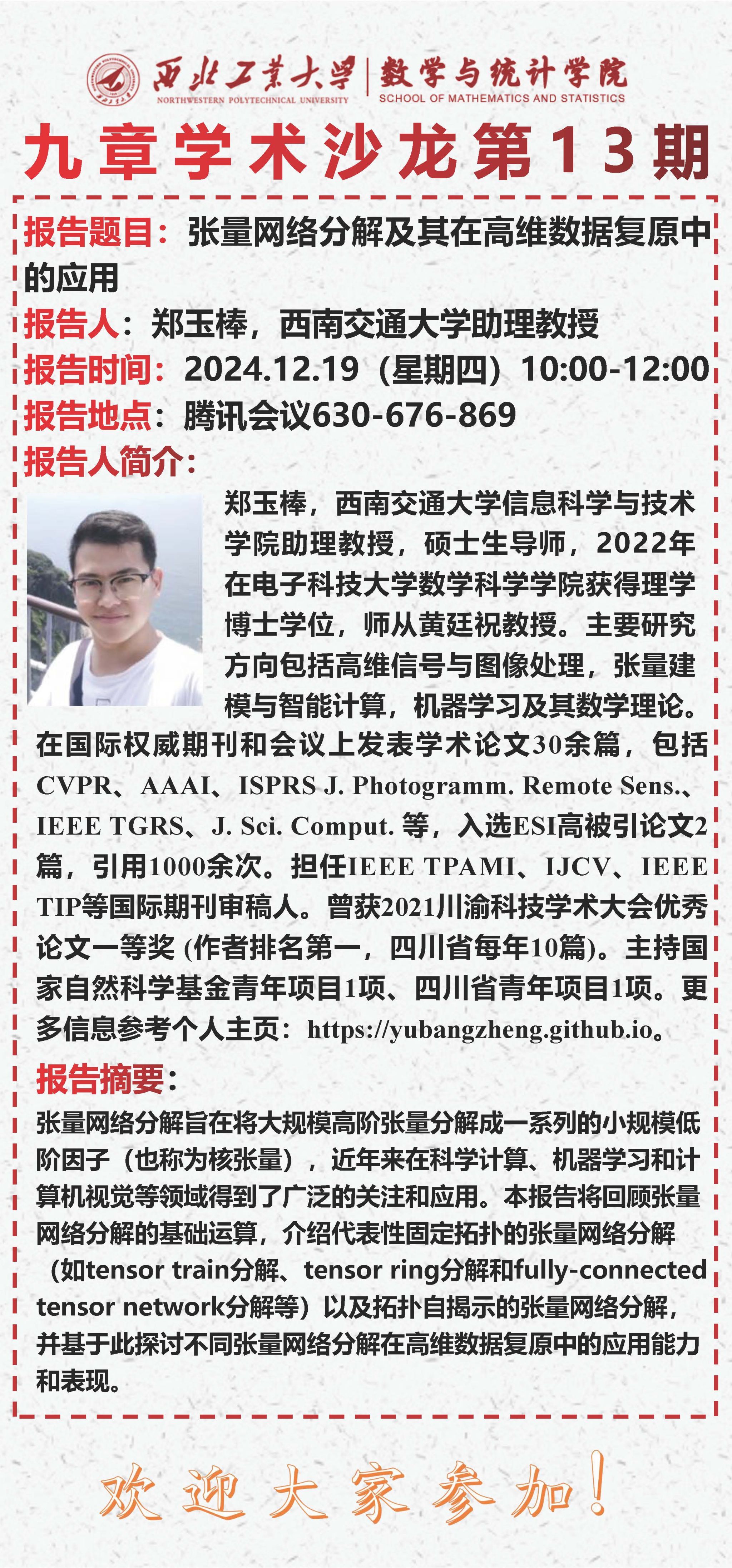 【九章学术沙龙第13期】张量网络分解及其在高维数据复原中的应用