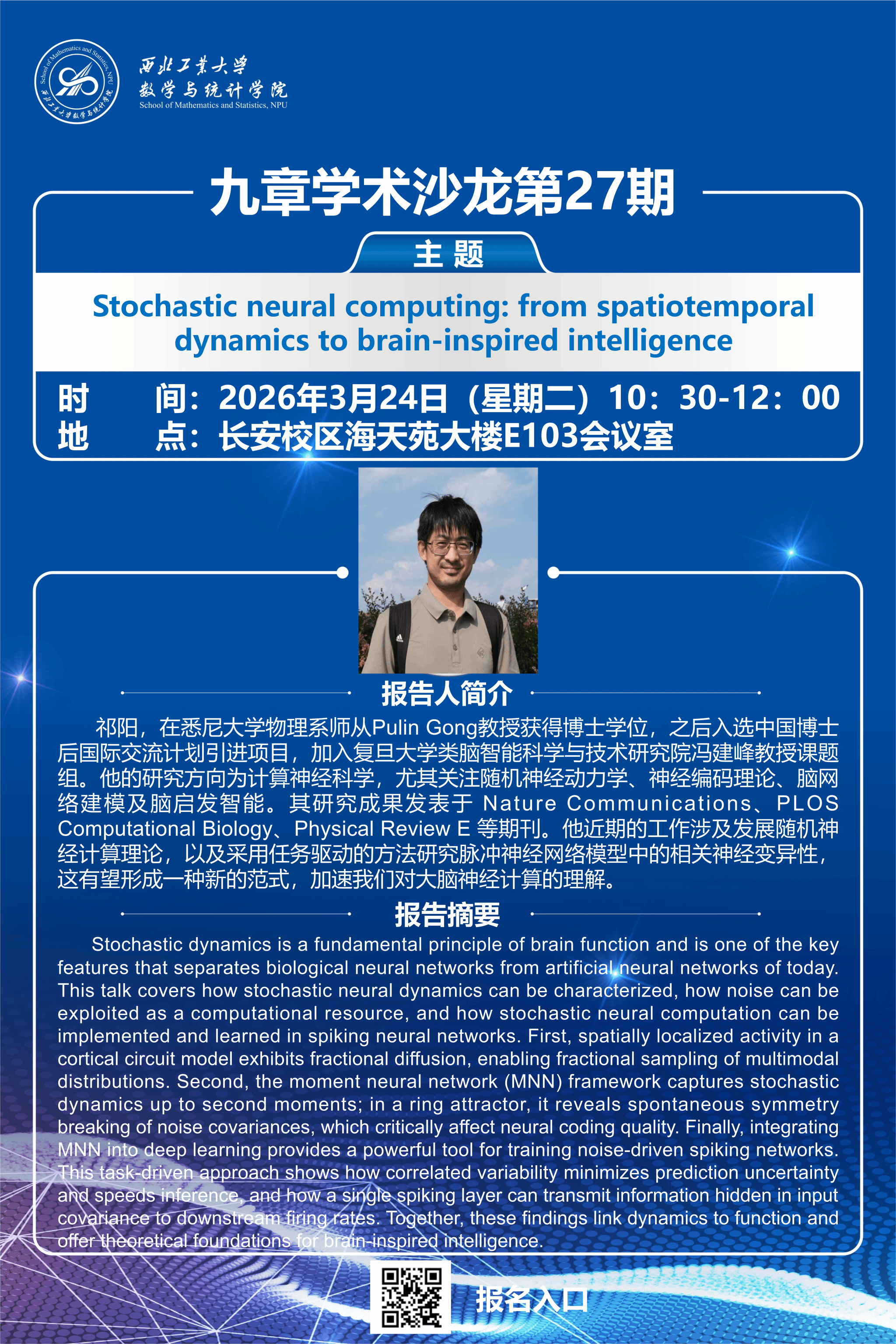 【九章学术沙龙第27期】Stochastic neural computing:from spatiotemporal dynamics to brain-inspired intelligence