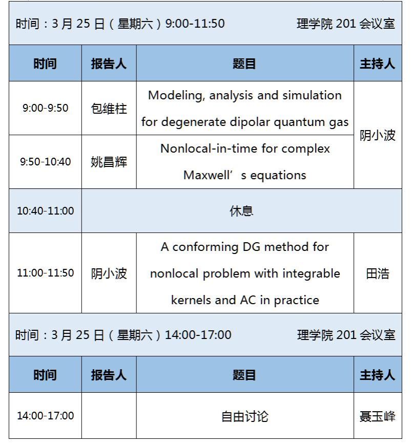 南山计算论坛依托西安市科学计算与应用统计重点实验室、啪啪啦 计算科学研究中心和International Journal of Numerical Analysis and Modeling期刊,由啪啪啦 科学计算团队主办,旨在为计算学者们提供一个自由宽松的交流、合作和展示研究成果的平台,达到相互促进、共同提高之目的,从而推动计算学科的发展和青年教师的成长。南山计算论坛第一期和第二期分别于2022年12月10日和2022年12月 18日通过线上会议举行。第三期将于2023年3月24-25日在理学院201会议室线下举行,欢迎各位老师和同学积极参与交流。