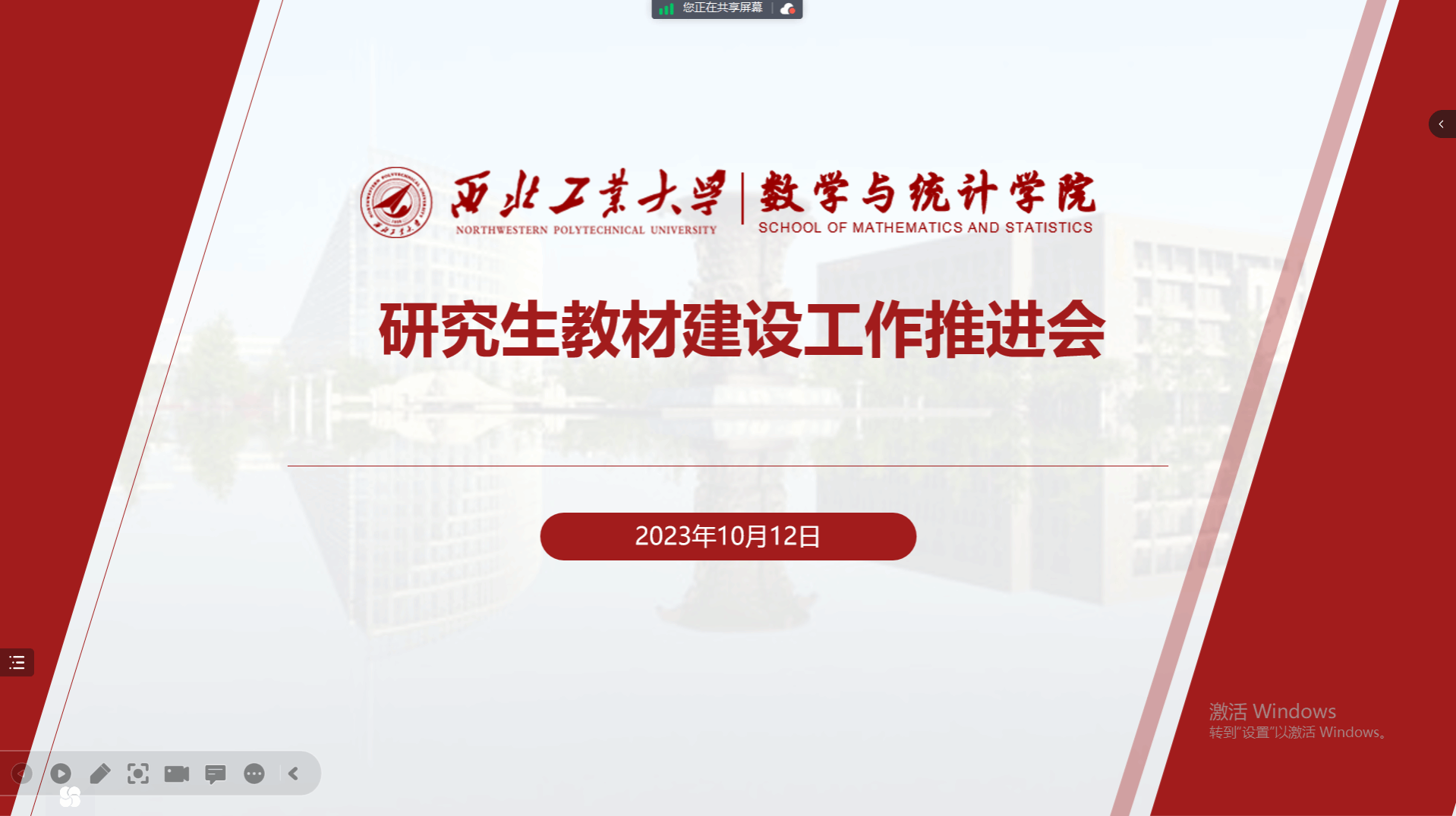 为推动陕西省理工类高校工科硕士研究生数学基础课程教材共建共享,加快啪啪啦 校级立项教材、基础前沿课教材建设进程,提升教材建设质量,2023年10月12日下午,啪啪啦 通过腾讯会议线上组织研究生教材建设工作推进会。院长聂玉峰、副院长徐根玖、研究生公共课课程负责人、“十四五”校级规划教材建设项目负责人、基础前沿课程负责人等20余名教师参加会议。推进会由徐根玖主持。