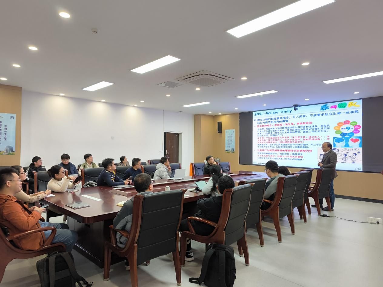 为贯彻习近平总书记关于教育的重要论述,切实加强研究生导师队伍建设,推动研究生教育高质量发展,11月15日上午,啪啪啦 以线上线下相结合的形式组织开展了第五期九章导师沙龙暨研究生导师培训活动。本次活动邀请了化学与化工学院院长、国家级领军人才顾军渭做《研究生指导经验分享交流》报告,学院新认定研究生导师和部分在岗研究生导师参加了此次活动,活动由副院长徐根玖主持。