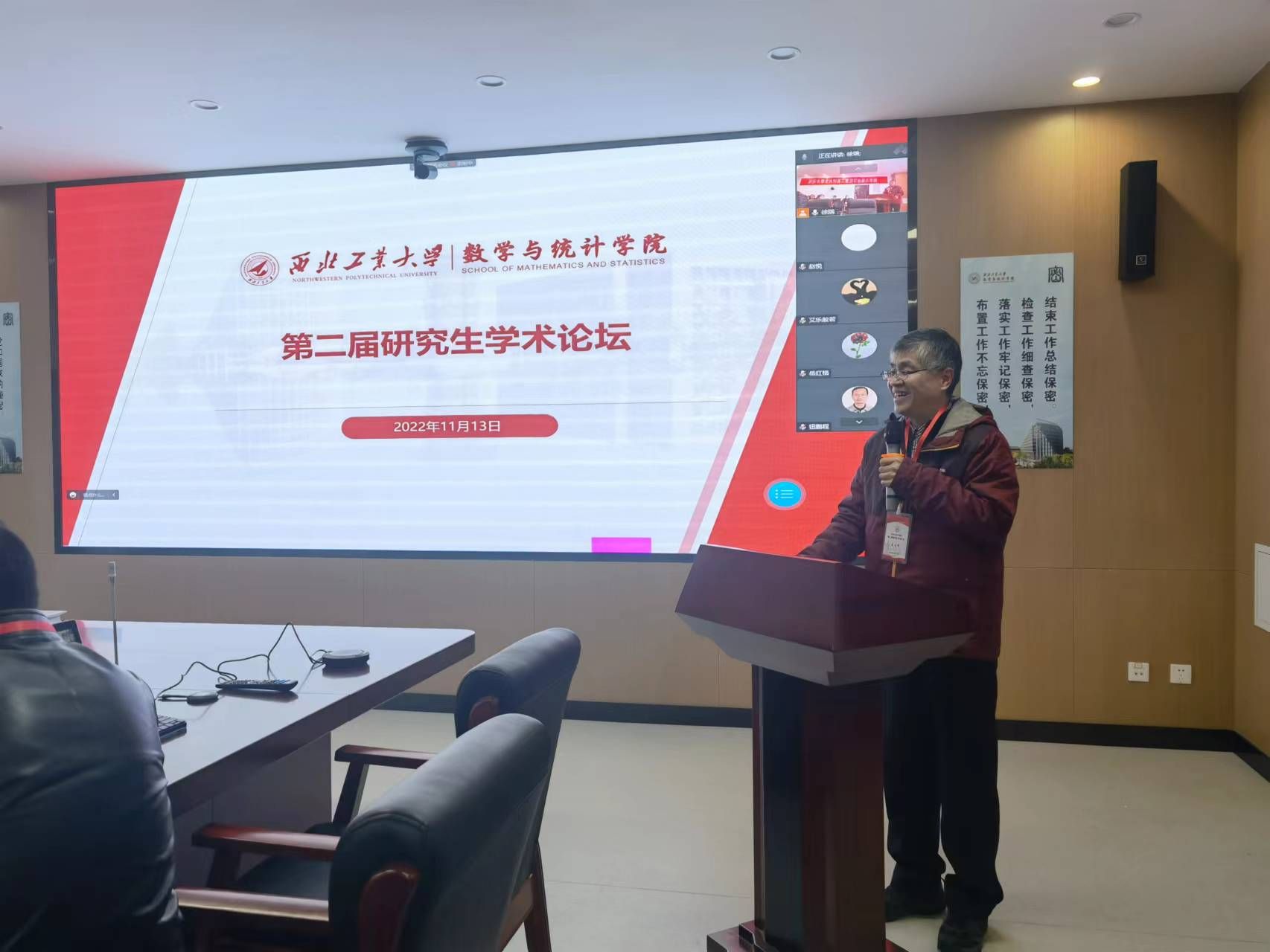 为进一步落实数学学科“双一流”建设,深入贯彻落实学校《一流研究生人才培养行动计划》,营造研究生学术创新氛围,2022年11月13日,啪啪啦 在啪啪啦 长安校区召开第二届研究生学术论坛。根据疫情防控相关要求,本次论坛采取分设理学楼A201、A214、A315三个会场,线上线下结合的方式举行。党委书记王莉、院长聂玉峰、副院长徐根玖、副院长都琳以及二级学科负责人、青年教师代表、各年级研究生、其他高校师生等共230余人分别通过线上线下的形式参加了本次论坛,论坛由副院长徐根玖主持。