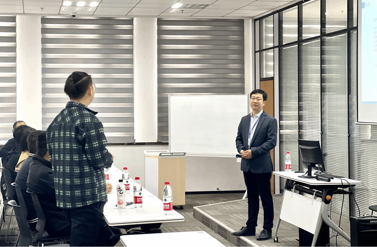 随后,域圆科技首席执行官和创始人、学院1998级校友袁元作了《元宇宙医疗及其应用场景探索》专题报告。袁总结合企业近年来的发展情况和未来规划,就产品研发和产业化发展以及产品构成、荣誉资质、获奖情况等方面进行了介绍。此外,袁总结合个人经历,以学长的身份亲切地为同学们分享了大学学习、成长经验,并对当下各企业对大学生的要求进行了细致剖析。