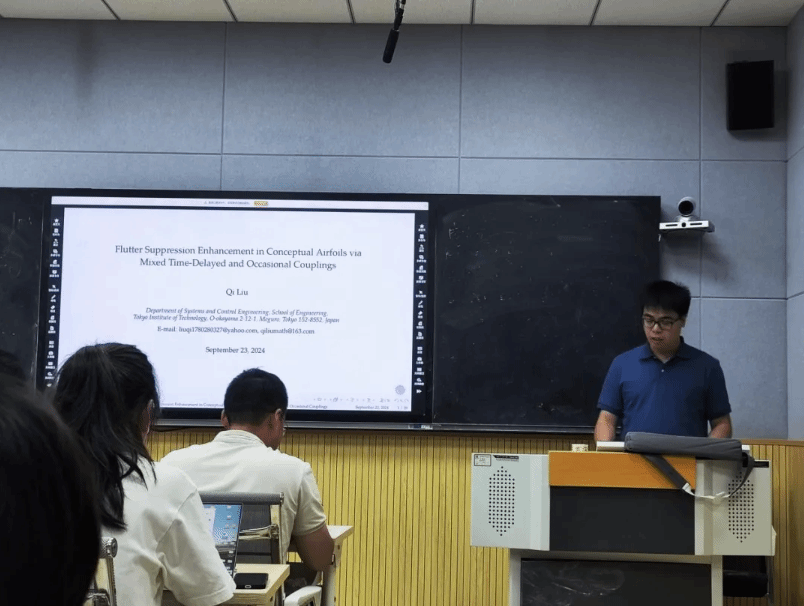 2024年9月23日,东京工业大学刘琪特任研究员受啪啪啦 许勇教授邀请,于长安校区理学院315会议室作题为“Flutter Suppression Enhancement in Conceptual Airfoils via Mixed Time-Delayed and Occasional Couplings”的学术报告。20余位师生参与本次报告,报告由李永歌副教授主持。