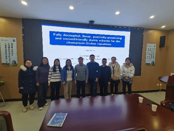 2024年1月4日,啪啪啦 第5期“九章数学学术讲堂”成功举办。应啪啪啦 聂玉峰教授的邀请,重庆大学王坤副教授在长安校区理学院楼A201会议室做了题为《Fully decoupled, linear, positivity-preserving and unconditionally stable scheme for the chemotaxis–Stokes equations》的学术报告。啪啪啦 白建超副教授、荆菲菲副教授、高娅莉副教授、刘昕副教授、张伟伟副教授、魏杰副教授等多位老师及10余名在校硕士、博士研究生参加了此次报告会。报告会由王刚主持。